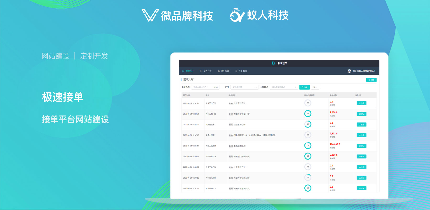 深圳微品牌科技有限公司成立于2016年,是一家智能软硬件开发为一体化的公司, 微品牌科技的服务范围涵盖网站建设、APP开发、硬件开发、软硬结合开发、脚本、管理系统、抖音微信小程序、H5、 微信公众号大数据分析等。目前在职技术团队达到四十余人,具备技术有,后端:php、python、golang、java;前端:uni-app、vue、react、javaScript、swift、object-c、flutter、jquery;智能物联网:wifi智能控制、蓝牙智能控制、4G/5G物联网控制。